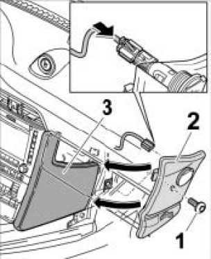 2. Insert footwell outlet vent cover -2- into centre console cover -3- and screw down the fastening screw -1-. Tightening torque Tightening torque 7.5 ftlb.
