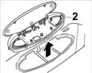 2. Take the electric lead out of the mirror housing -2- and detach the mirror housing from the sun visor.