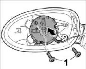 2. Unscrew the three fastening screws -1- from mirror adjusting motor.