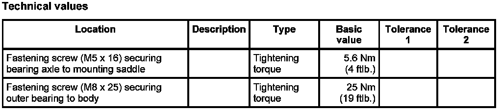 2. Secure bearing axle -3- with the fastening screw -2-. Tightening torque: Tightening torque: 5.6 Nm (4 ftlb.)