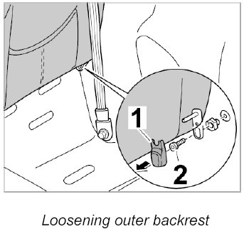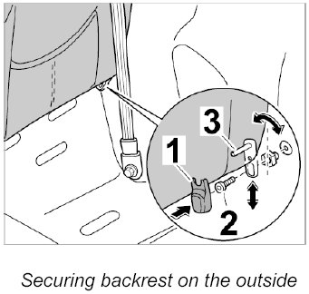 4. Lock backrest, align it and screw in fastening screw -2- on the outer bearing -3-. Tightening torque: Tightening torque: 25 Nm (19 ftlb.)