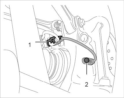 1. Place speed sensor in installation position. Tighten the fastening screw -2- to 10 Nm (7.5 ftlb.).
