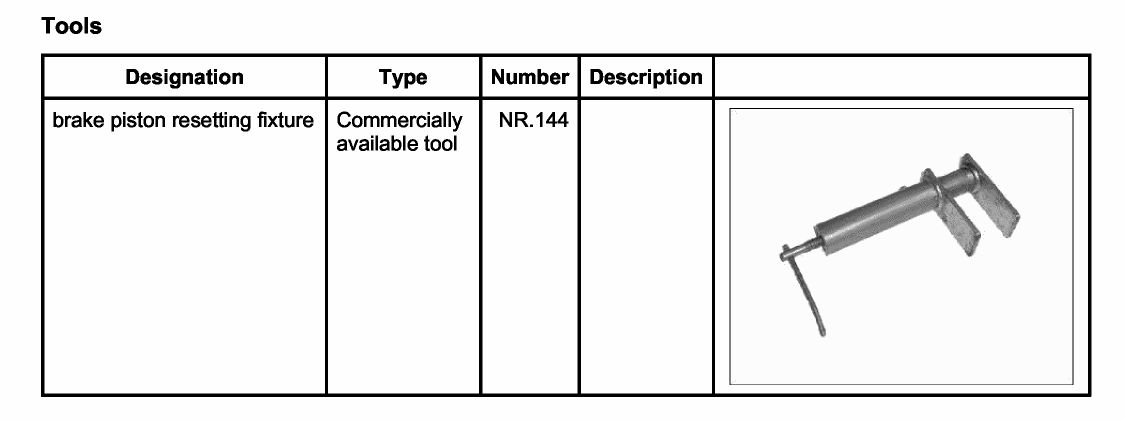 2. If necessary, push the brake pistons back into their original position using the brake piston resetting fixture NR.144.