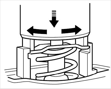 4. Using the assembly aid P 9627, push the springs down and twist the sheetmetal tabs out of the holding slots, remove insert.