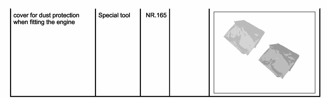 -> Use the cover for dust protection when fitting the engine NR.165 on the engine assembly support.