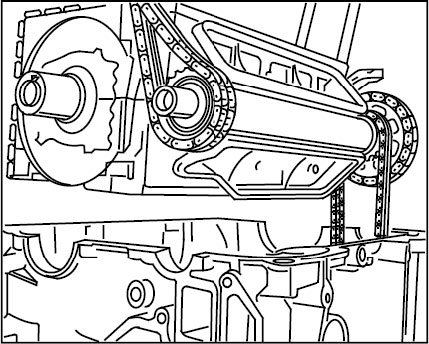 8. Remove intermediate shaft with timing chains and place on a clean surface. Check timing chains and toothing on intermediate shaft for signs of damage, replace if necessary.