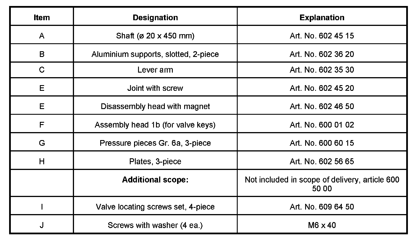 The following tool is used and recommended for the described work: commercially available tool Valve keys assembly- disassembly tool for Boxster + Carrera NR.54 (Sauer Co., Art. No. for standard case 600 50 00).