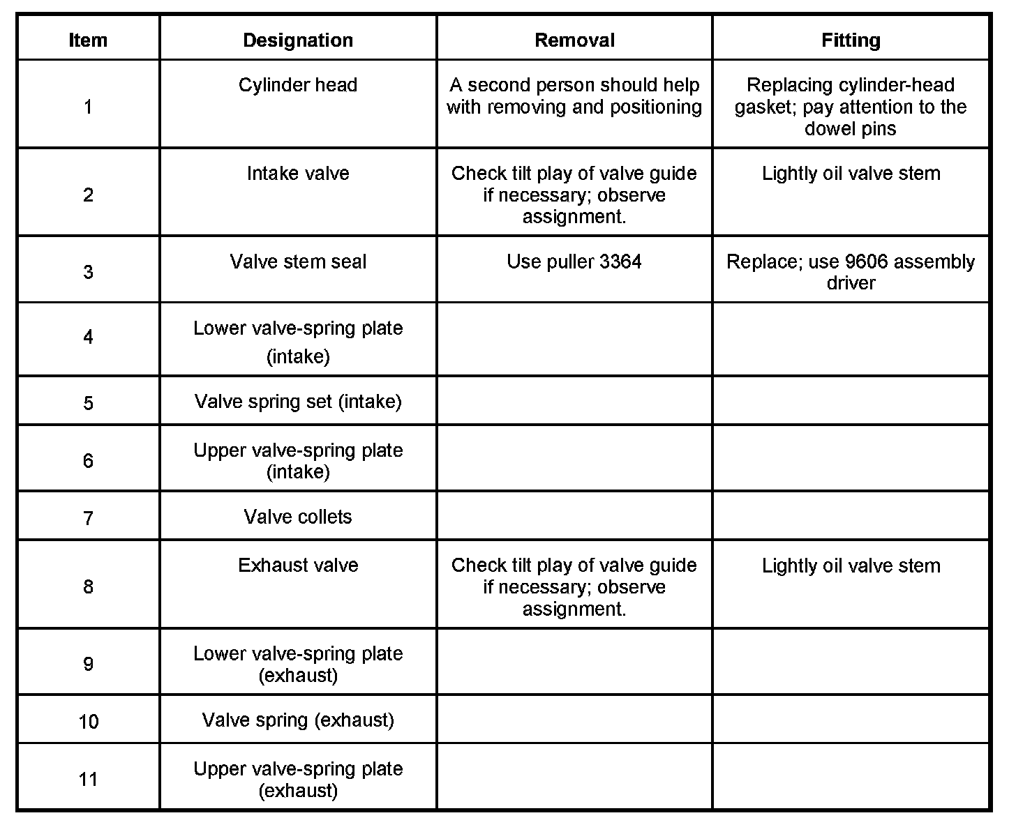 Reusable inner parts of the cylinder head must always be cleaned thoroughly and assigned to their original installation location.