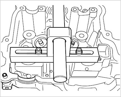 5. Place disassembly head on upper valve-spring plate and press together the valve springs with the lever arm. The valve keys and the concave washer stick due to the magnetic insert on the disassembly head. Repeat this process by moving the joint at the required valves.