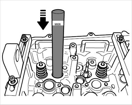 2. Press valve-stem seal with the assembly driver 9606 up to the stop on the valve stem. Take off tool and assembly sleeve.
