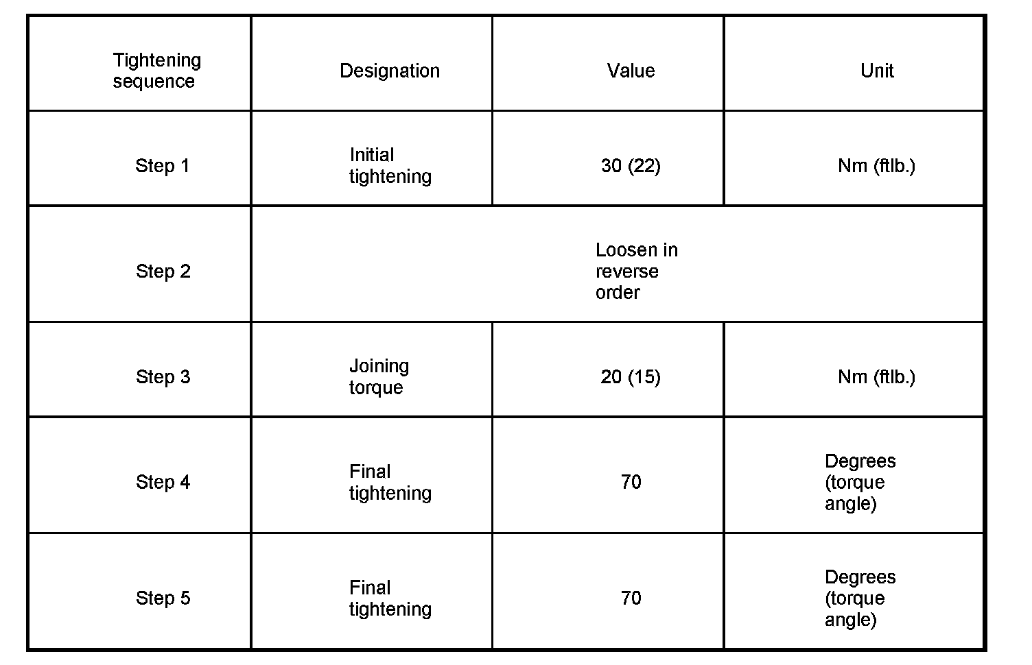 4. Screw in twelve M10 Torx screws evenly and tighten according to the prescribed tightening sequence -1 to 12- in 5 steps (see table).