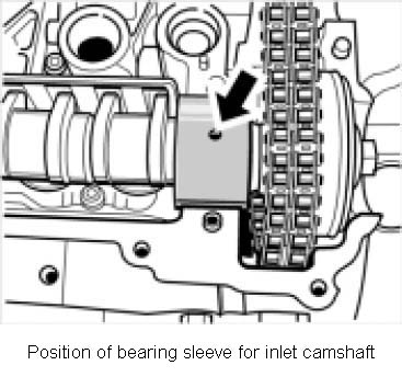 Note: Make sure that the bearing sleeve on the inlet camshaft is positioned correctly.