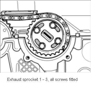 6. Release the four Torx screws M6 on the sprocket of the respective exhaust camshaft. Do not remove the sprocket.