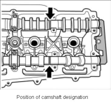 Note: Between the start of series production in April 2004 and August 2004, the camshaft manufacturer changed the lettering of the camshafts. In order to avoid a mixed installation, particular attention must be paid to the designation of engines installed in standard vehicles during this period.