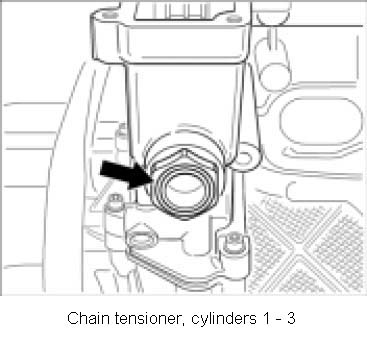 7. Remove chain tensioner for cylinders 1 -3 or -6.