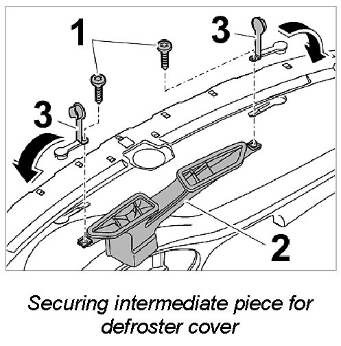 1. Pull defrost air guide -2- up out of the heater/air-conditioning unit.