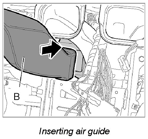1. Insert the air guide -B- into the heating/air-conditioning unit and check that it is secure.