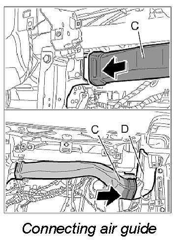 2. Connect air guide -C- at the heater/air-conditioning unit and at the air guide -D-.