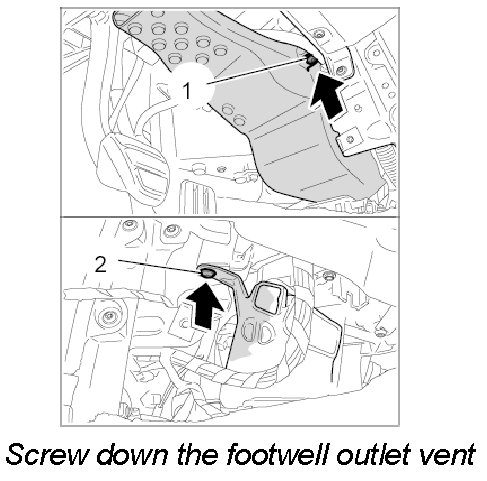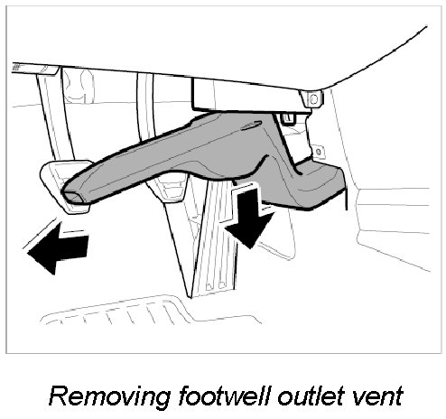 2. Pull the footwell outlet vent down out of the heater/air-conditioning unit and remove through the driver's side.