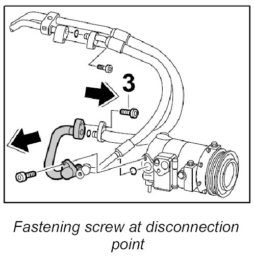 - Before re-installing the component, check the O-rings of the refrigerant lines for damage and replaced them if necessary.