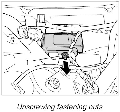 1. Unscrew fastening nut -1-.
