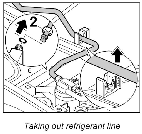 - Before re-installing the component, check the O-rings of the refrigerant lines for damage and replaced them if necessary.