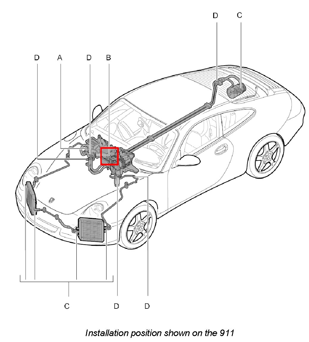 7. Check water drain hose for damage; if drain hose shows no sign of damage, connect hose to the drain on heater/air-conditioning unit and fix with the clamp -C-.
