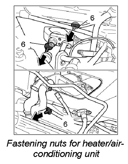 11. Push dashboard bracket forwards while lifting the heater/air-conditioning unit and taking care that no electric lines get trapped.