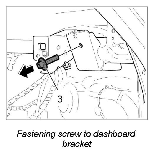 5. Unscrew fastening screw -3- for securing holder of the heater/air-conditioning unit to right side of dashboard bracket (next to A-pillar).