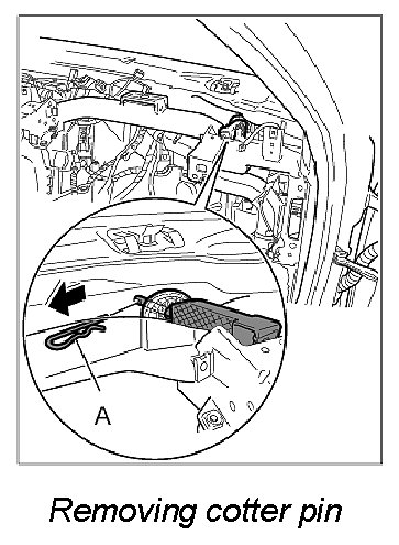 10. Pull out cotter pin -A- for holder of the heater/air-conditioning unit.