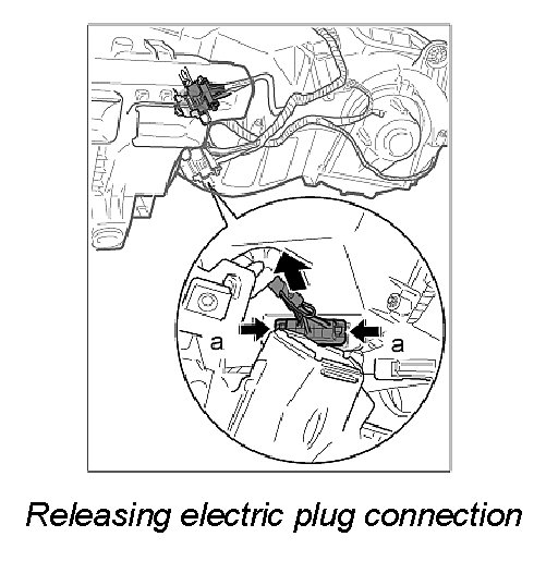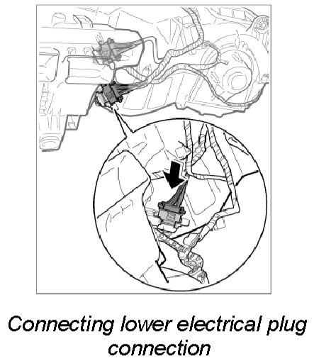 5. Connect upper electric plug connection at heater/air-conditioning unit until it is felt to engage.