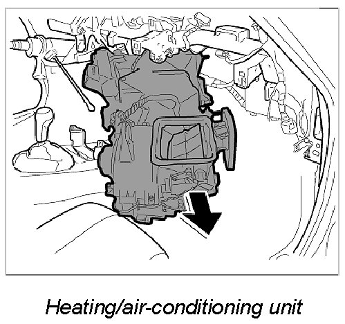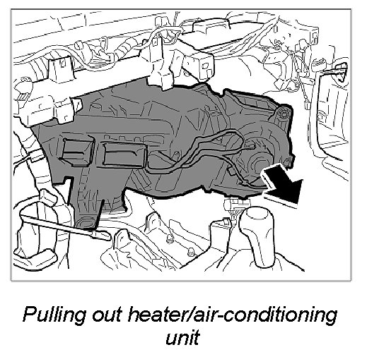 19. Remove heater/air-conditioning unit from passenger compartment via passenger's door.