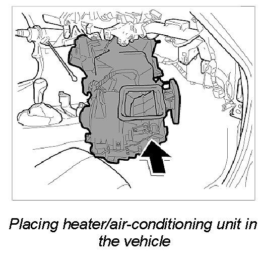 1. Insert heater/air-conditioning unit in the vehicle over the passenger's side.