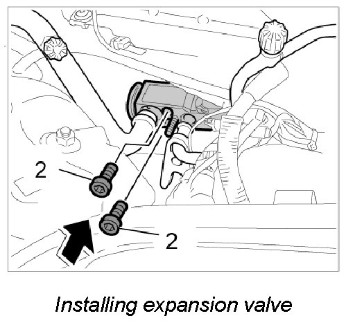 3. Unscrew fastening screws -2- and remove expansion valve.