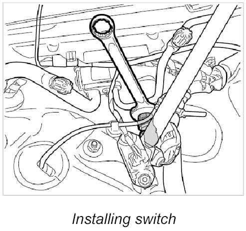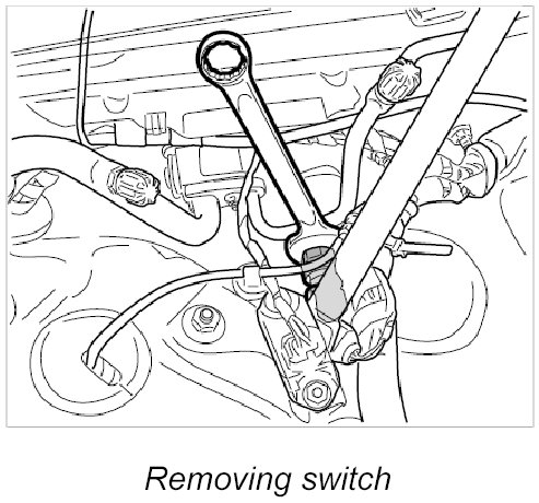 The pressure switch is located in the radiator tank, right side in the direction of travel, under the cowl panel cover.