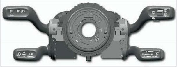 In the multi-function control unit the individual signals are combined into a protocol and relayed serially via single-core cable, volute springs to the combined steering column module, where they are processed for CAN transmission.