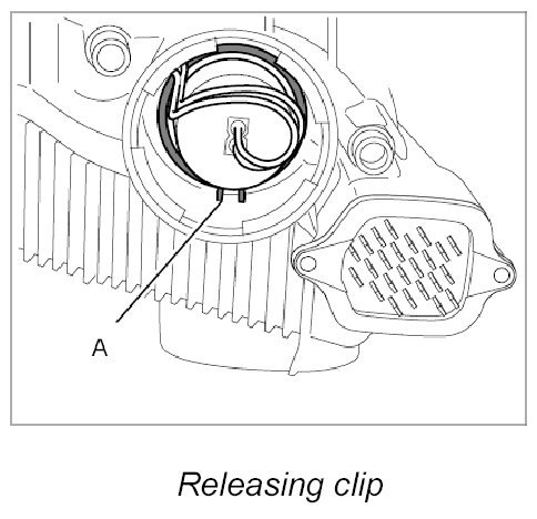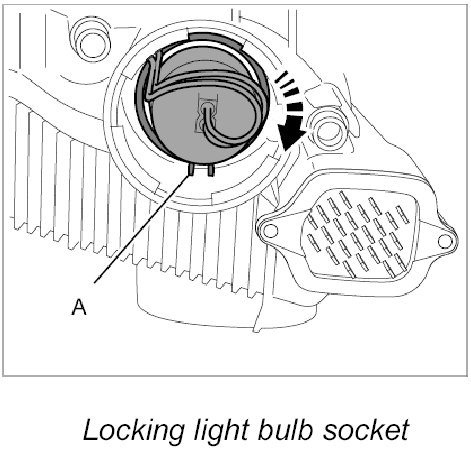 2. Insert light bulb socket into the auxiliary headlight and turn to lock it (bayonet lock) until the clip -A- engages audibly on the light bulb socket.