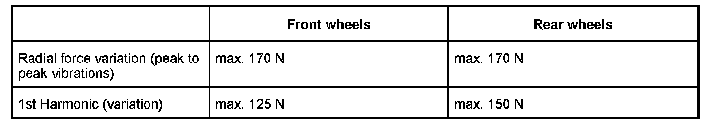 A new tire must be fitted if the radial force variation cannot be reduced to the values listed in the table.