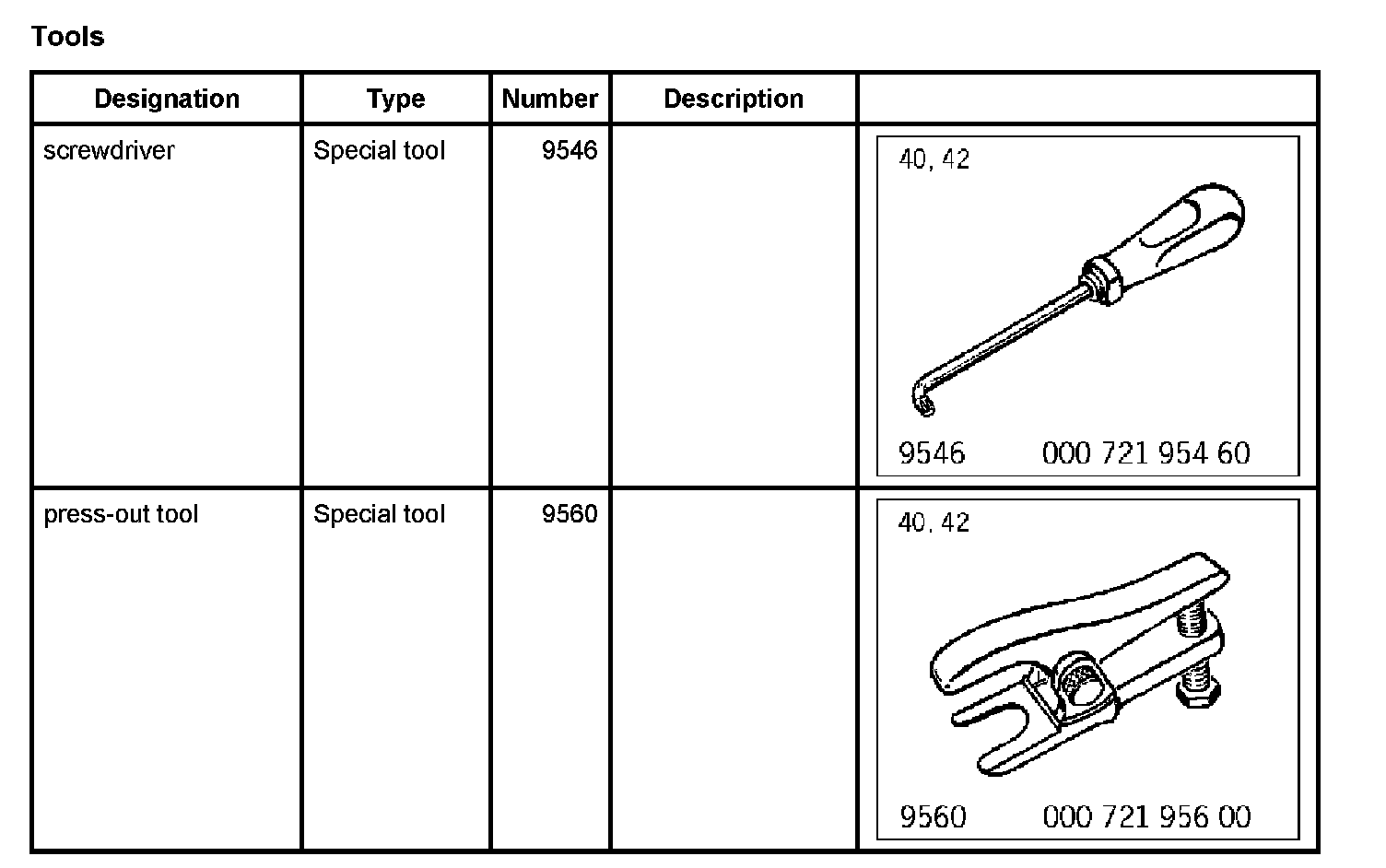 3. Loosen tie rod and control arm at wheel carriers and press off the ball joints with special tool press-out tool 9560. When loosening the lock nuts, counter at the ball-joint pins with special tool screwdriver 9546 (Torx screwdriver).