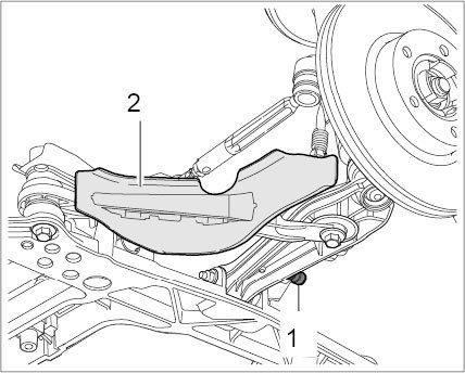 On vehicles with all-wheel drive (911 Carrera 4/911 Turbo), remove the spoiler at the diagonal arm -2- (the air guide for the brake cooling).