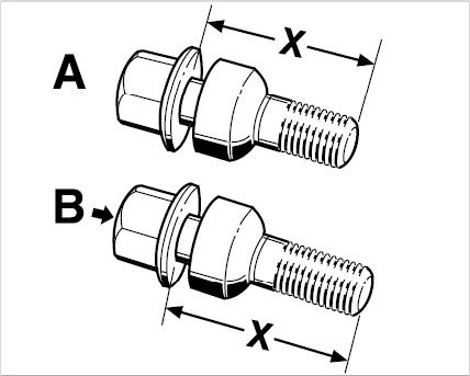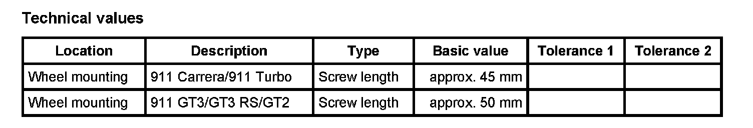 The wheels on the 911 Carrera (997) and 911 Turbo (997) are secured using the same standard wheel bolts -A- (M14 x 1.5) as are used on the 911 Carrera (996). Length: dimension -X- -> Screw length: approx. 45 mm.