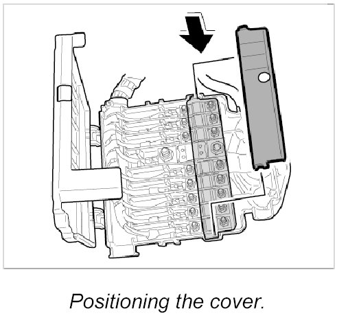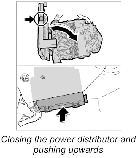5. Close the power distributor until the lid is felt to engage and seal with the red seal label.
