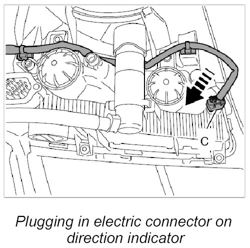 2. Plug in electric connector on the side direction indicator -C- until the connector engages securely.