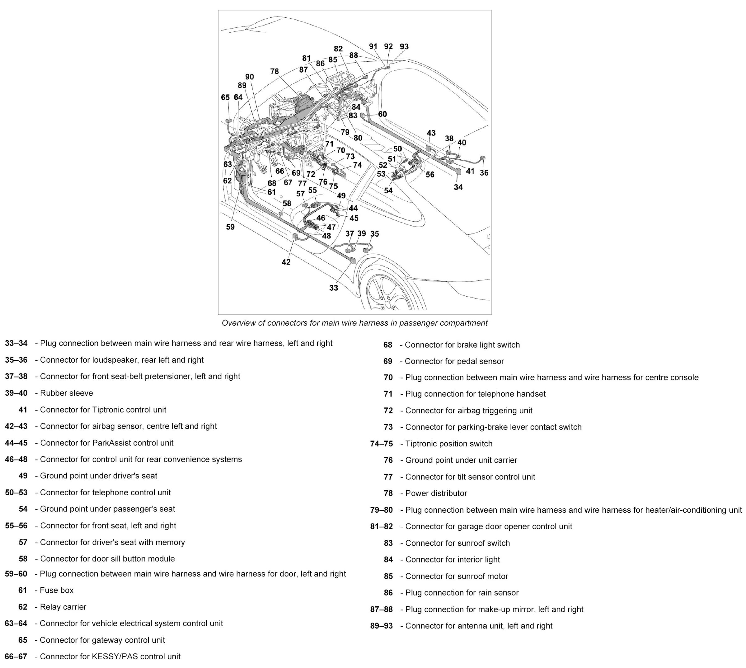 19. Push on connectors of KESSY/PAS control unit -66 and 67- until they engage securely.