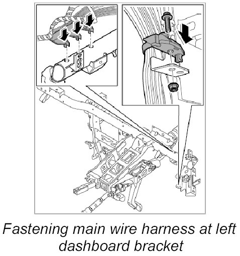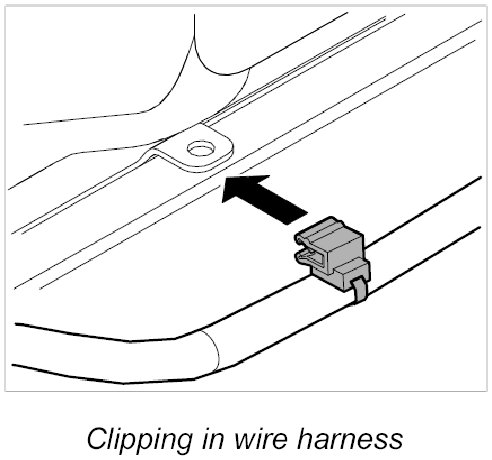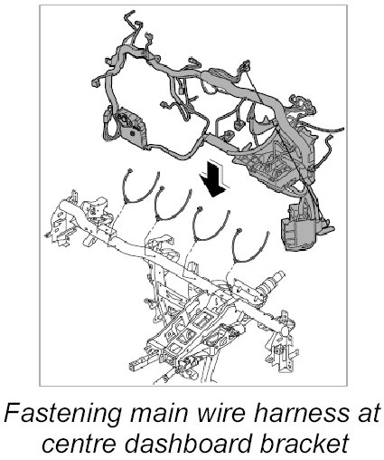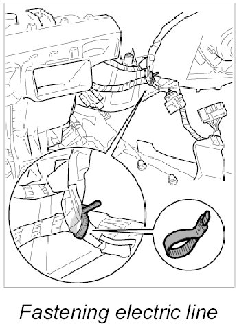 14.1. Lay main wire harness to heater/air-conditioning unit wire harness and fix with a tie-wrap.