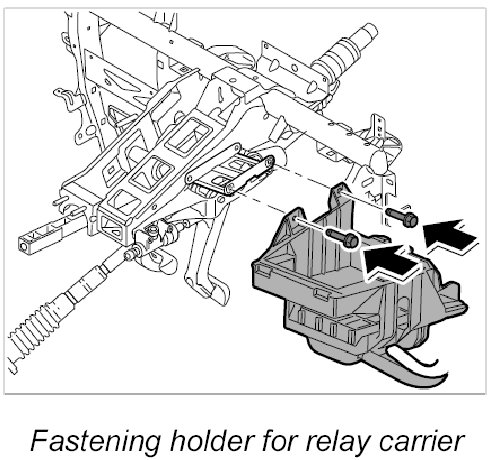4.1. Position holder for relay carrier and tighten with the two fastening screws to the dashboard bracket. - Tightening torque: 3.5 Nm (2.5 ftlb.)
