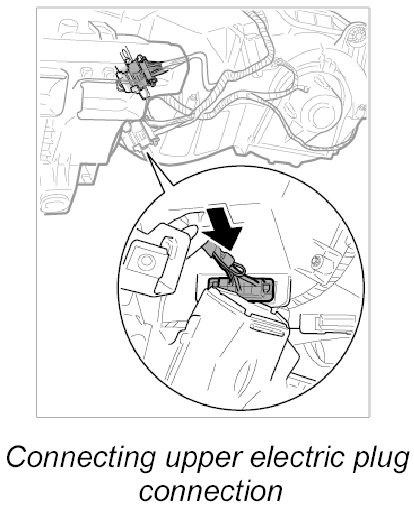14.2. Push in upper electric plug connection at heater/air-conditioning unit until it engages securely.