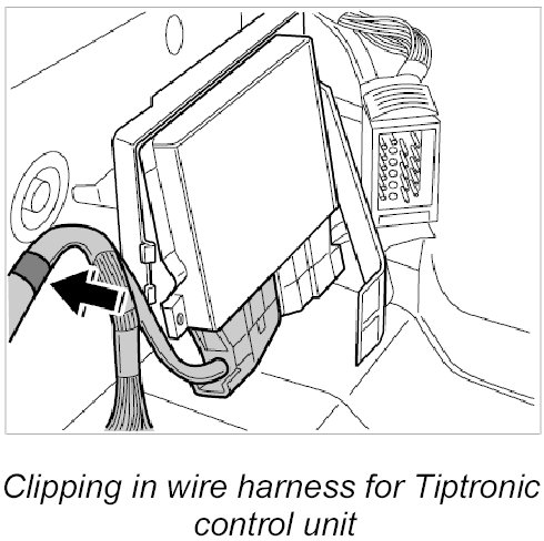 30. Push on connector on Tiptronic control unit -41- until it engages securely and lock it.