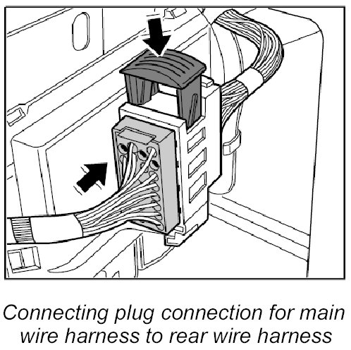 32. Connect plug connection between main wire harness and rear wire harness at the left and right -33 and 34- and lock it.