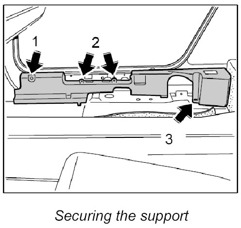 1.2. Press in the locating peg -1- of the support and check it is seated correctly.